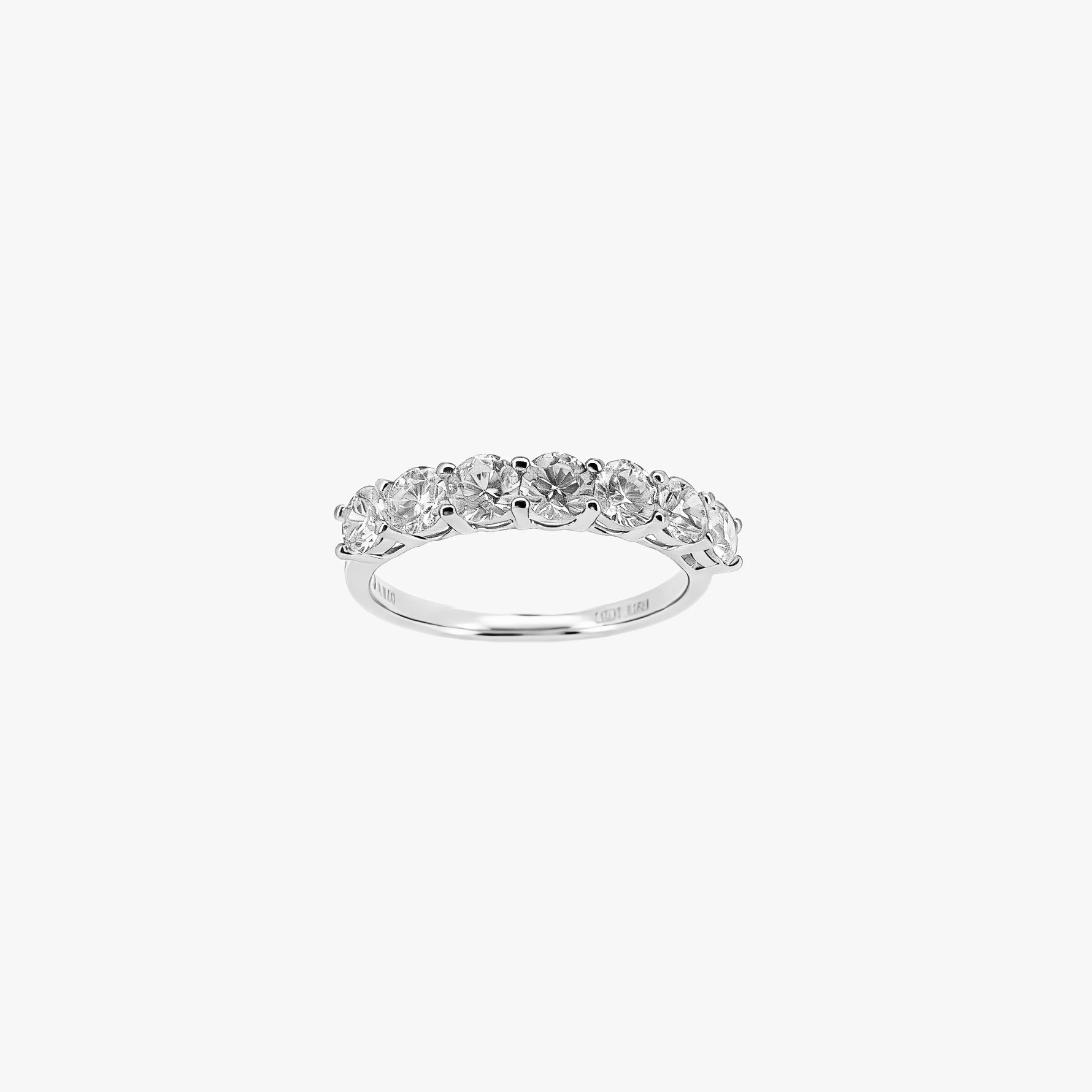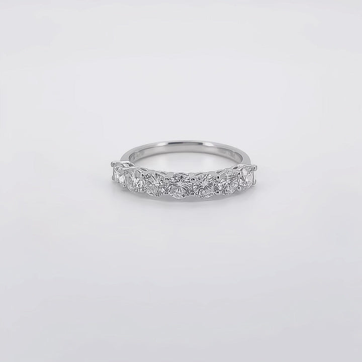 Celebrate your eternal love with our stunning Round Anniversary Band, showcasing seven brilliant round-cut lab-grown diamonds that gracefully adorn the top half of the band. Each diamond is expertly set in a classic shared-prong style to maximize its exceptional sparkle and fire. Available in luxurious 18K White Gold, this anniversary band features E-F Color and VS Clarity diamonds, offering both timeless elegance and modern sophistication for a look you'll treasure forever.
